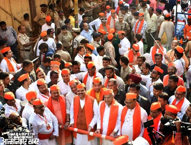 नागपूर ब्युरो: श्री.पोद्दारेश्वर राम मंदिराच्या आज निघालेल्या श्रीराम जन्मोत्सव शताब्दी शोभायात्रेचा शुभारंभ राज्याचे उपमुख्यमंत्री देवेंद्र फडणवीस यांच्या हस्ते झाला. नागपूर शहरातील दोन शोभायात्रांमध्ये उपमुख्यमंत्री देवेंद्र फडणवीस यांनी सहभाग घेतला. यावेळी रामभक्तांची मोठ्या प्रमाणावर गर्दी पहायला मिळाली.