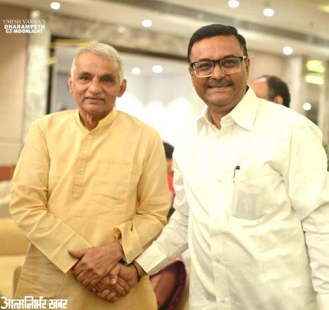 नागपुर ब्यूरो: पद्मश्री डॉ. प्रकाश आमटे एक कार्यक्रम में शामिल होने के लिए नागपुर आए थे। इस अवसर पर मूनलाइट, धरमपेठ, नागपुर के संचालक उमेश वर्मा की उनसे मुलाकात हुई। इस दौरान डॉ. प्रकाश आमटे ने उमेश वर्मा को मूनलाइट धरमपेठ की ओपनिंग के लिए आशीर्वाद दिया और उज्ज्वल भविष्य के लिए शुभकामनाएं दी। उन्होंने कहां कि फोटोग्राफी में चाहे प्रोफेशनल फोटोग्राफी हो या फोटो जर्नलिज्म हो, उमेश वर्मा का कोई जवाब नहीं है। सटीक क्लिक लेने के लिए जो सेंस फोटोग्राफर और फोटो जर्नलिस्ट में होना चाहिए वो उमेश वर्मा के भीतर कूट-कूटकर भरा हुआ है। यहीं वजह है कि उन्होंने इस क्षेत्र में अपनी एक अलग पहचान बनाई है।