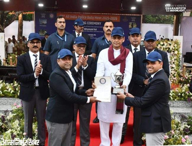 अखिल भारतीय पोलिस कर्तव्य मेळावा 2025-26 च्या औचित्याने दिनांक 29 मार्च ते 3 एप्रिल कालावधीत पार पडलेल्या विविध स्पर्धांचा समारोप आज केंद्रीय गृह राज्यमंत्री नित्यानंद रॉय यांच्याहस्ते पार पडला. नागपूर सिटी पोलीस मुख्यालयाच्या शिवाजी स्टेडियम येथे हा समारंभ आयोजित करण्यात आला होता. या मेळाव्यात देशभरातील 29 राज्यांतील पोलिस अधिकारी व कर्मचाऱ्यांसह केंद्रीय दलांचाही त्यात सहभाग होता. यावेळी विविध स्पर्धांमध्ये अव्वल आलेल्या राज्यांच्या संघांना गृह राज्यमंत्री नित्यानंद रॉय यांच्याहस्ते पुरस्कार देण्यात आले.